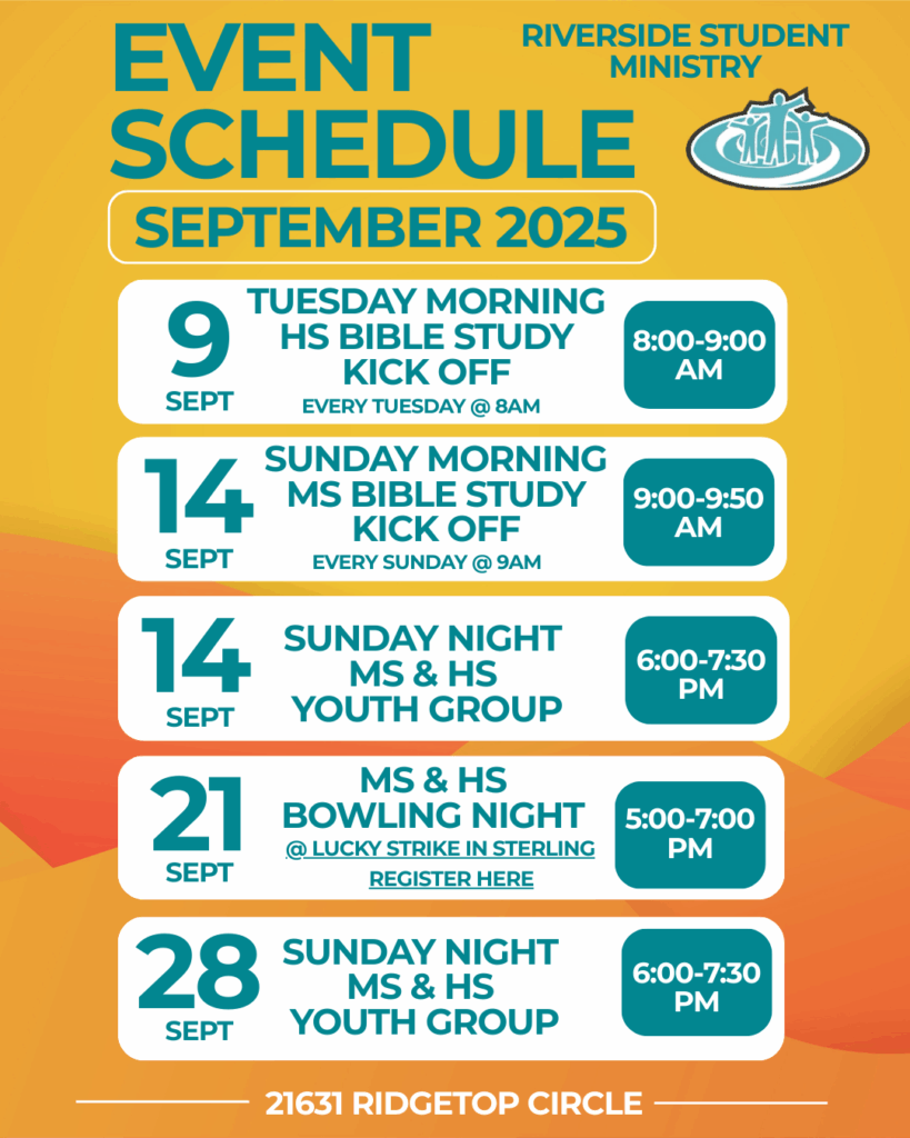 Exists to fulfill the Mission of Riverside Church in the lives of 6th to 12th grade students and their families. Through active participation in youth groups, Bible studies, events, etc. students have the opportunity to grow into fully devoted followers of Christ.